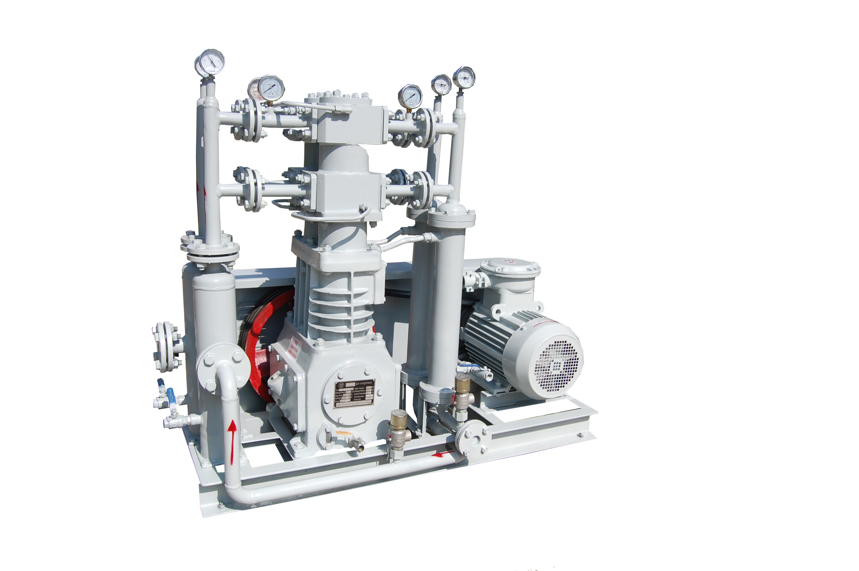氫氣壓縮機(jī)壓縮機(jī)是我公司新型產(chǎn)品,它集壓縮機(jī)、氣液分離器、安全閥冷卻器、電動(dòng)機(jī)等為一體,成一完整的機(jī)組。具有功能多、體積小、重量輕、功率小、運(yùn)行平穩(wěn)可靠等特點(diǎn),并有良好的安全性能。它為輸送氫氣,可為用戶(hù)最大限度地創(chuàng)造經(jīng)濟(jì)效益。由于采用獨(dú)特的無(wú)油潤(rùn)滑設(shè)計(jì),氣缸內(nèi)無(wú)需用油潤(rùn)滑,因而不會(huì)對(duì)介質(zhì)造成污染,使被輸送物質(zhì)保持純凈。本機(jī)設(shè)計(jì)成機(jī)組型式,許多管線(xiàn)上的附件都安裝在機(jī)組上,省卻了氣液分離器、穩(wěn)壓罐、安全閥、進(jìn)氣過(guò)濾器等,減小了機(jī)房的面積,減少了操作維護(hù)工作量,節(jié)省了投資。