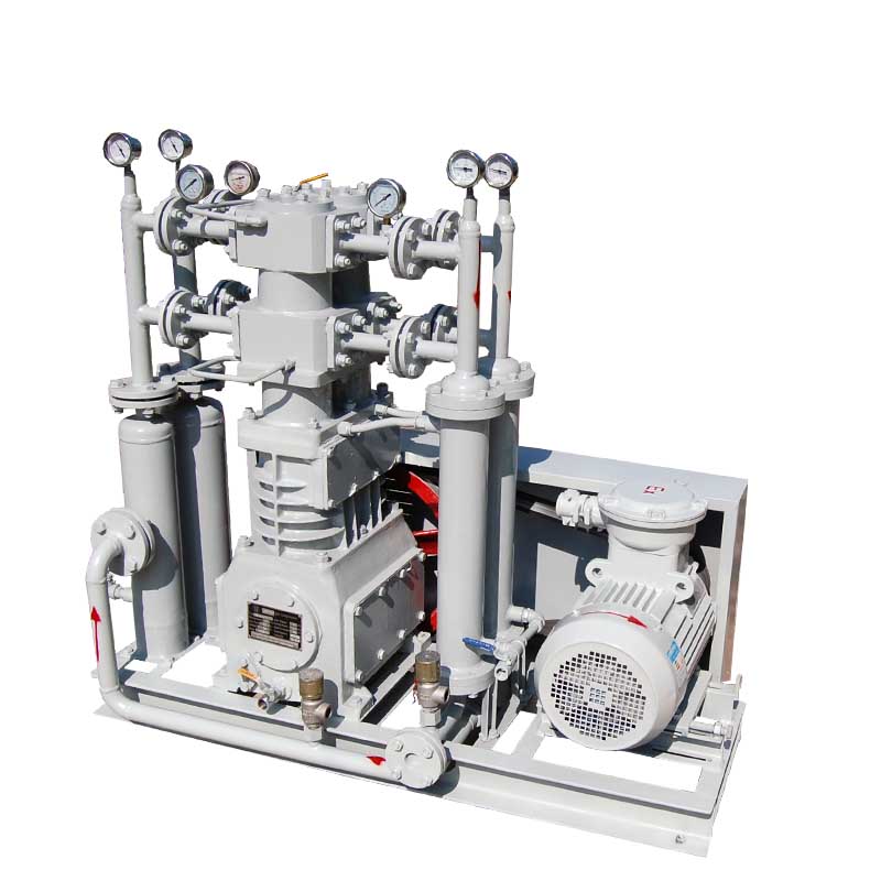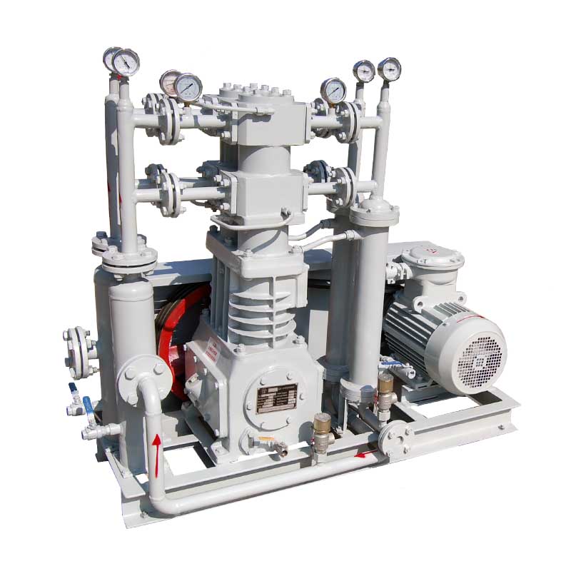 丁烷壓縮機壓縮機是我公司新型產品,它集壓縮機、氣液分離器、安全閥冷卻器、電動機等為一體,成一完整的機組。具有功能多、體積小、重量輕、功率小、運行平穩(wěn)可靠等特點,并有良好的安全性能。由于采用獨特的無油潤滑設計,氣缸內無需用油潤滑,因而不會對介質造成污染,使被輸送物質保持純凈。本機設計成機組型式,許多管線上的附件都安裝在機組上,省卻了氣液分離器、穩(wěn)壓罐、安全閥、進氣過濾器等,減小了機房的面積,減少了操作維護工作量,節(jié)省了投資。