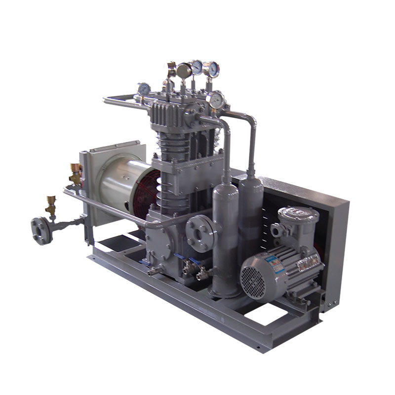 環(huán)氧乙烷壓縮機(jī)是我公司新型產(chǎn)品,它集壓縮機(jī)、氣液分離器、安全閥冷卻器、電動(dòng)機(jī)等為一體,成一完整的機(jī)組。具有功能多、體積小、重量輕、功率小、運(yùn)行平穩(wěn)可靠等特點(diǎn),并有良好的安全性能。由于采用獨(dú)特的無(wú)油潤(rùn)滑設(shè)計(jì),氣缸內(nèi)無(wú)需用油潤(rùn)滑,因而不會(huì)對(duì)介質(zhì)造成污染,使被輸送物質(zhì)保持純凈。本機(jī)設(shè)計(jì)成機(jī)組型式,許多管線上的附件都安裝在機(jī)組上,省卻了氣液分離器、穩(wěn)壓罐、安全閥、進(jìn)氣過濾器等,減小了機(jī)房的面積,減少了操作維護(hù)工作量,節(jié)省了投資。