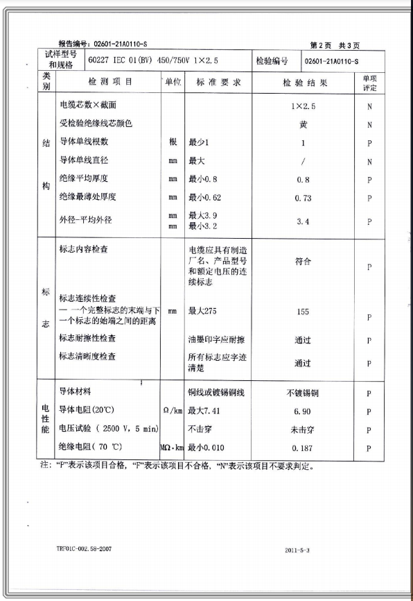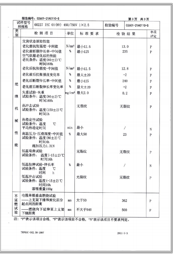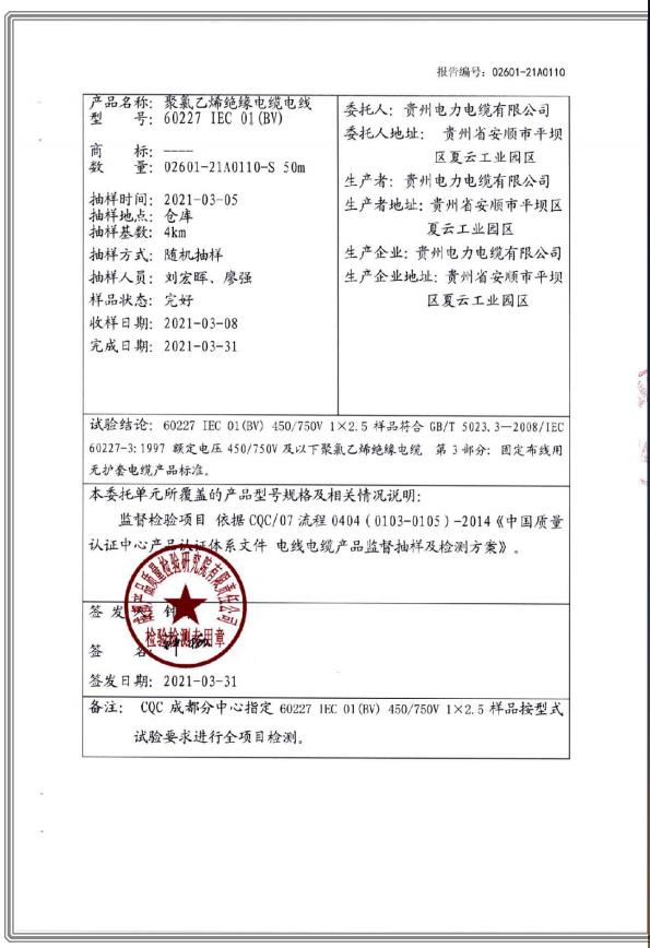 聚氯乙烯乙烯絕緣電纜電線 國家強制性產(chǎn)品試驗認證報告